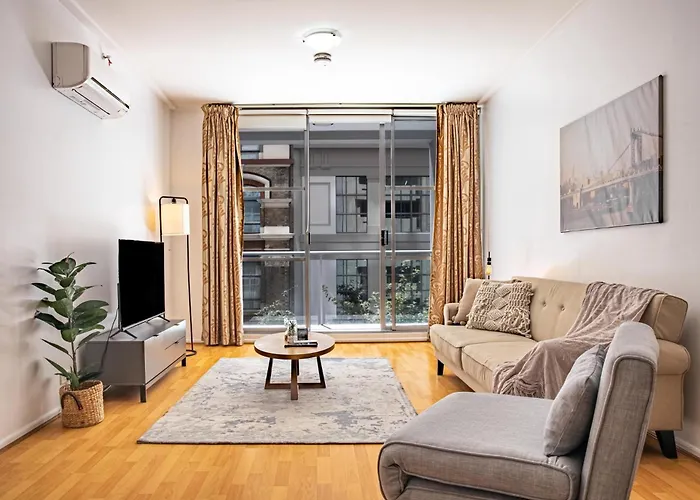 Stylish Studio With Pool & Gym In Heart Of Sydney est niché dans le voisinage de "central des affaires de Sydney" à Cité de Sydney, à moins de 300 mètres du Centre commercial Harbourside. Les Jardins botaniques royaux de Sydney sont situés à quelques minutes de route de la résidence.